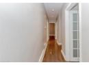 Single story home with asphalt driveway, a garage, a chimney, and brick siding View of exterior entry featuring a chimney, brick siding, and a porch Entryway featuring wood finished floors and baseboards Unfurnished living room featuring ornamental molding, wood finished floors, a fireplace, recessed lighting, and a baseboard radiator Unfurnished living room with wood finished floors, recessed lighting, and ornamental molding Unfurnished dining area featuring wood finished floors, recessed lighting, ornamental molding, and a chandelier Unfurnished dining area with plenty of natural light, light wood-style flooring, crown molding, and recessed lighting Unfurnished room with crown molding, light wood-type flooring, a chandelier, and recessed lighting Kitchen featuring glass insert cabinets, decorative backsplash, crown molding, dark wood-type flooring, and appliances with stainless steel finishes Kitchen featuring glass insert cabinets, appliances with stainless steel finishes, backsplash, white cabinets, and light wood finished floors Kitchen featuring glass insert cabinets, backsplash, stainless steel fridge, light wood-style floors, and ornamental molding Kitchen with glass insert cabinets, appliances with stainless steel finishes, white cabinets, backsplash, and crown molding Kitchen with open shelves, stainless steel appliances, ornamental molding, tasteful backsplash, and light wood-style flooring Kitchen featuring tasteful backsplash, stainless steel dishwasher, light stone countertops, open shelves, and white cabinetry Hallway featuring light wood-style floors and recessed lighting Unfurnished dining area featuring a chandelier, wood finished floors, and recessed lighting Unfurnished dining area featuring light wood finished floors, a chandelier, and recessed lighting Empty room featuring light wood-style flooring, a chandelier, and recessed lighting Unfurnished bedroom with light wood-style flooring, recessed lighting, and a chandelier Empty room with dark wood-style floors, a chandelier, and recessed lighting Bathroom featuring double vanity, shower / bathtub combination, and light tile patterned flooring Full bathroom with shower / bathtub combination Empty room featuring wood finished floors, recessed lighting, and wallpapered walls Spare room with light wood-style flooring and recessed lighting Doorway to property featuring a deck and brick siding Staircase featuring wood finished floors and recessed lighting Basement featuring light wood-style floors, stairs, and recessed lighting Basement featuring light wood-style floors and recessed lighting Basement featuring light carpet, a fireplace, and recessed lighting Basement with carpet flooring and recessed lighting Half bathroom featuring vanity and light tile patterned floors Full bathroom with toilet Spare room featuring wood finished floors and recessed lighting Unfurnished bedroom with light wood finished floors, a closet, and recessed lighting Laundry area featuring washing machine and dryer and light tile patterned floors Wooden terrace with a hot tub and a fenced backyard View of deck View of wooden terrace Community play area featuring a yard