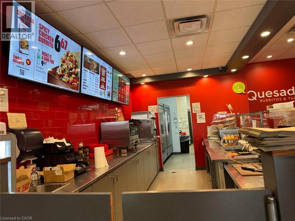Exceptional opportunity to own a well-established Quesada Burritos & Tacos franchise at one of Mississauga’s busiest intersections—Winston Churchill Blvd & Argentia Rd. This approx. 1,450 sq. ft. location offers a secure 5-year lease with automatic renewal and strong long-term potential. Surrounded by major retailers including Walmart, Costco, Winners, Homesense, and Shoppers Drug Mart, the plaza benefits from constant daily foot traffic and excellent visibility. Successfully operating for over 10 years, this turnkey business offers stable income, strong brand recognition, and a loyal customer base. Monthly rent is $7,867 (including TMI & taxes) with reasonable franchise fees (6% royalty + 2% advertising). A rare opportunity to step into a proven, profitable business. (id:63285)